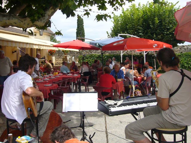 After a hot busy day .... everyone stopped of Chez Nicole! A restaurant, situated in this 'lost' village of Masclat - but one of the busiest in the region. You have to go where the French go as you know it will be good! Entertainment had been planned for this evening as it often is.